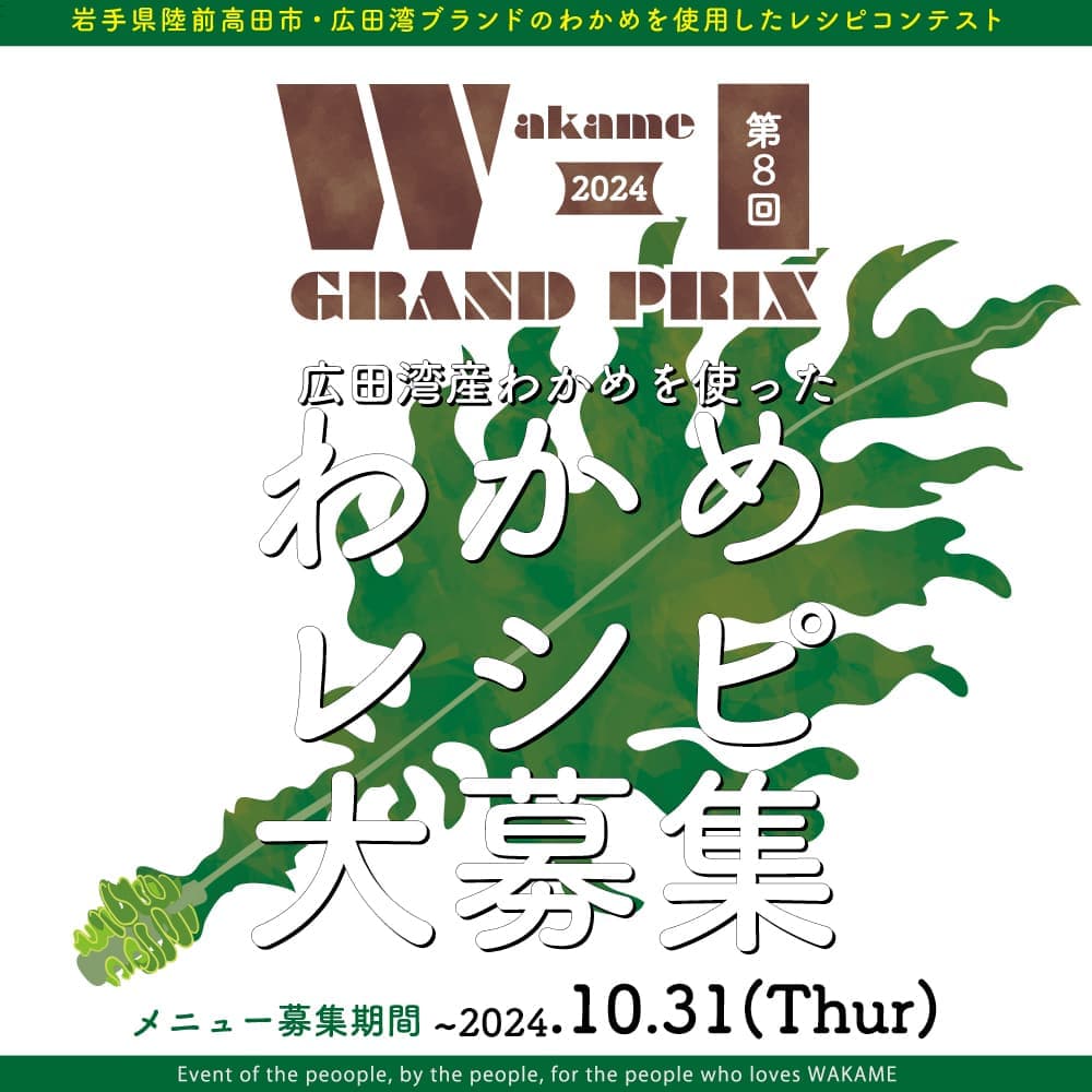 いよいよW-1グランプリ2024がスタートです。世界三大漁場と呼ばれ、海産資源が豊富な岩手県三陸沖広田湾でとれたワカメを使ったメニューを募集します!11/7まで応募が可能となっておりますので、料理に自信のある方、ワカメが好きな方、ご応募お待ちしております。