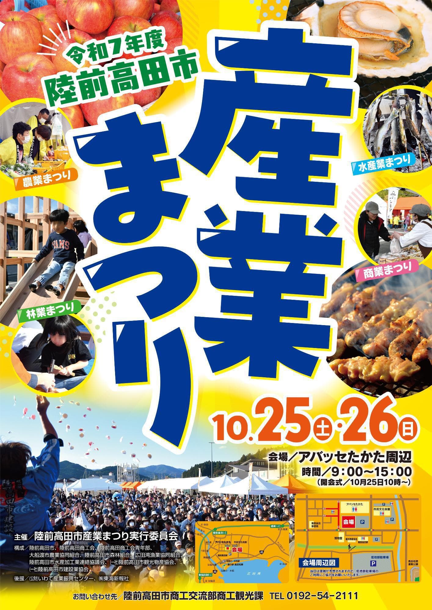 豊かな海産物や農産物、地元の特産品が勢揃いし、交流都市の出店や賑やかなステージイベント、恒例のもちまきなどもあり、陸前高田の魅力と活気を「飲んで、食べて、見て」丸ごと体験できる秋の賑わいイベントです。
